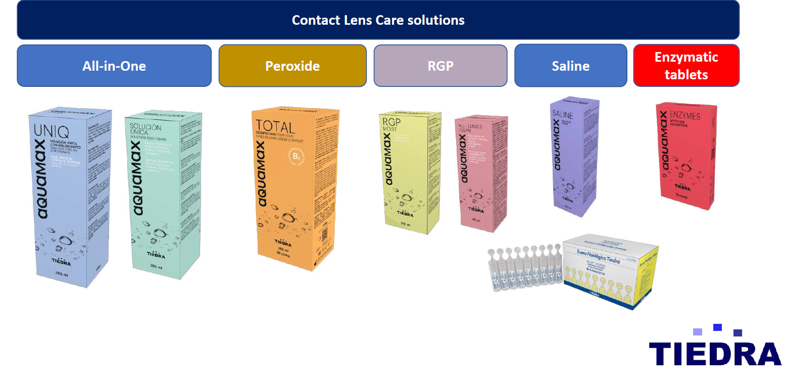 Tiedra – це молода та амбіційна іспанська компанія, що зосередилася на дизайні та виробництві кастомізованих контактних лінз і засобів для догляду за контактними лінзами з урахуванням інноваційних технологій підтримки здоров’я очей.