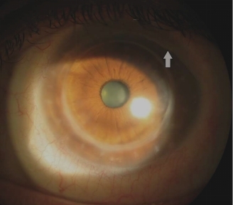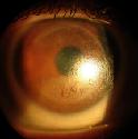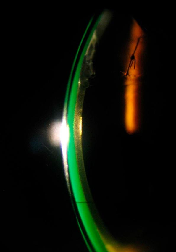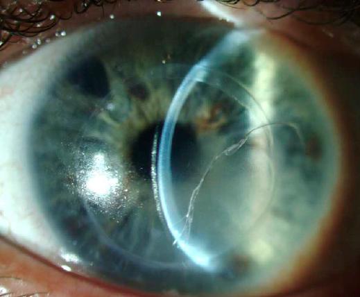 Рис. 3. Набряк трансплантата рогівки, викликаний СКЛ. Примітка: тріщина на всю товщину контактної лінзи відповідала ділянці набряку